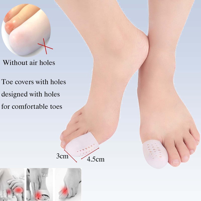 - 【Breathable & Comfortable】These toe protectors feature numerous breathable holes, allowing your skin to breathe freely and keeping sweat at bay. The ultra-thin design fits snugly, maintaining a sleek look while preventing friction during walking and exercise for maximum comfort. Whether paired with sandals, sneakers, or high heels, these toe covers provide a perfect fit.