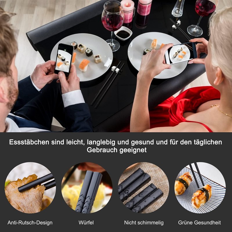 - ✿【Anti-slip Design】The luxury chinese chopsticks are straight and even, they close tightly and therefore guarantee a firm grip. The matte surface on the heads of the chopsticks prevents the dishes from slipping. If you have sushi, pasta or any other Asian cuisine, this is very convenient.