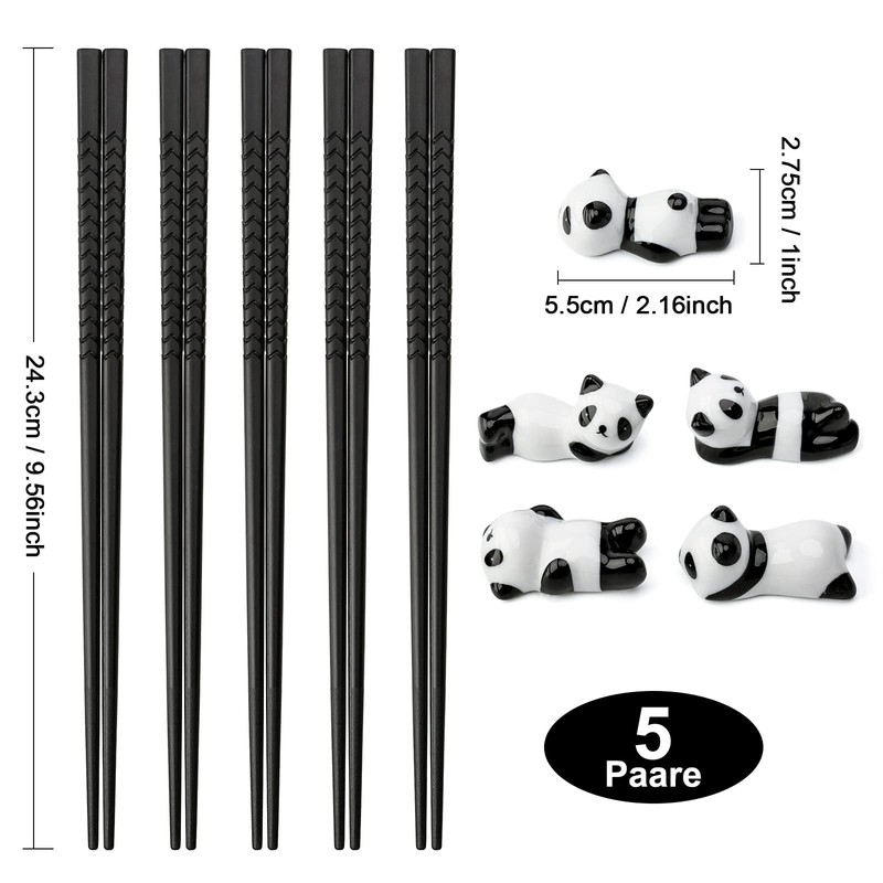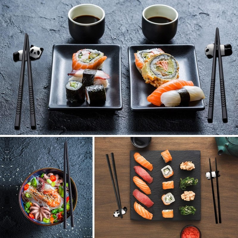 - ✿【Perfect Chopsticks Set】You will get 5 pairs chopsticks reusable metal and 5 pcs Panda ceramic holder. Reusable chopsticks are both antiseptic and environmentally friendly, they are an ideal replacement for wooden and plastic chopsticks. They are reusable and dishwasher safe.