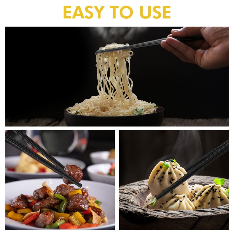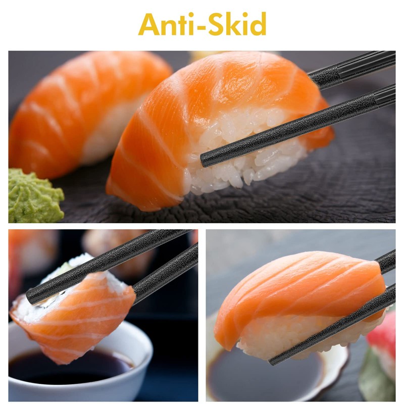 • DOUBLE NON-SLIP DESIGN - non-slip tips and anti-rolling squared body, this design can prevent the chopsticks from sliping through your fingertips or rolling on the table, making it easier to hold, even for first-time users, and the elongated, pointy, non-slip, frosted texture prevents food from falling off between your chopsticks.