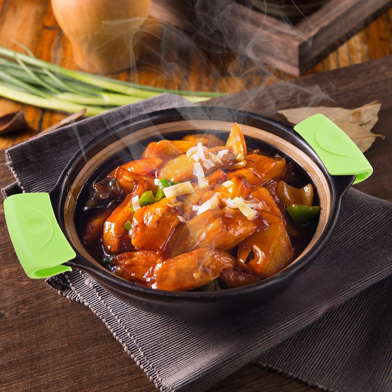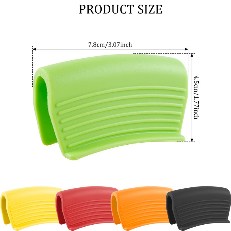 This 5 pairs of pot holder covers are made of thickened silicone, durable and heat-resistant, which can protect your hands from getting burned when moving pots and pans. It measures 7.8 x 4.5cm / 3 x 1.77 inches and fits most pot handles or lid handles.