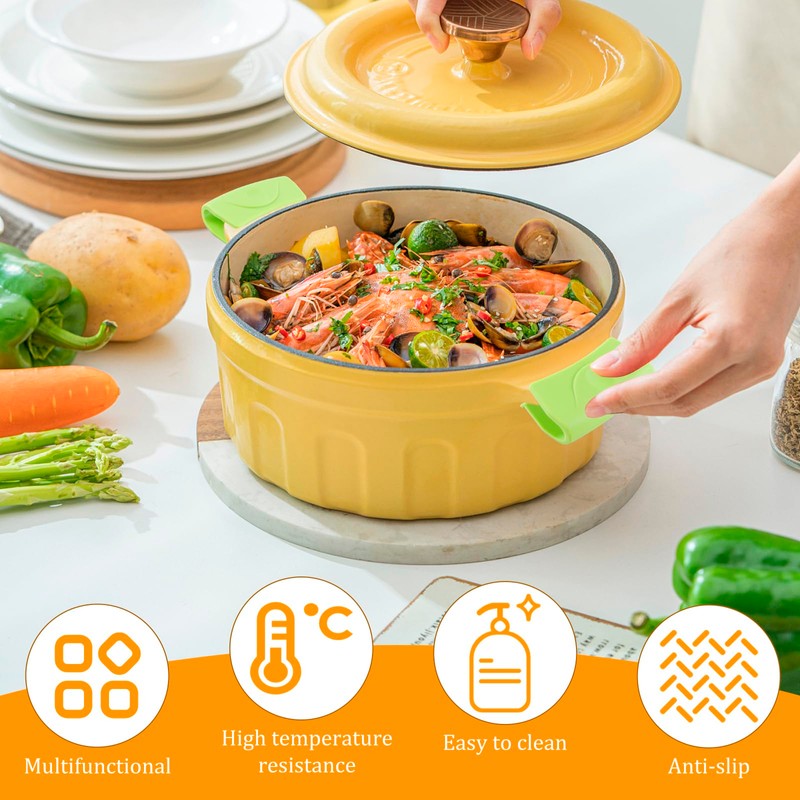 Enough Quantity: This 5 pairs of silicone pot holder covers are enough to meet your daily use needs, you can also use separate handle covers for different pots and pans.