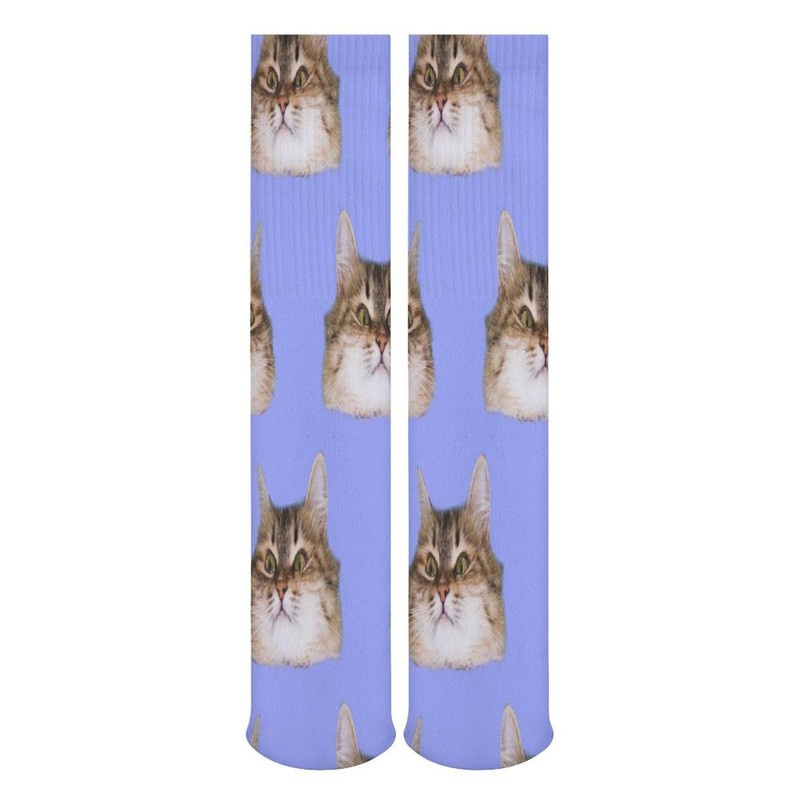 5 Pairs Soft Circulation Socks, Compression Crew Knee High Stockings Long Athletic for Running Sports 15.7x3.9 in Print Cat's Heads on Blue Seamless