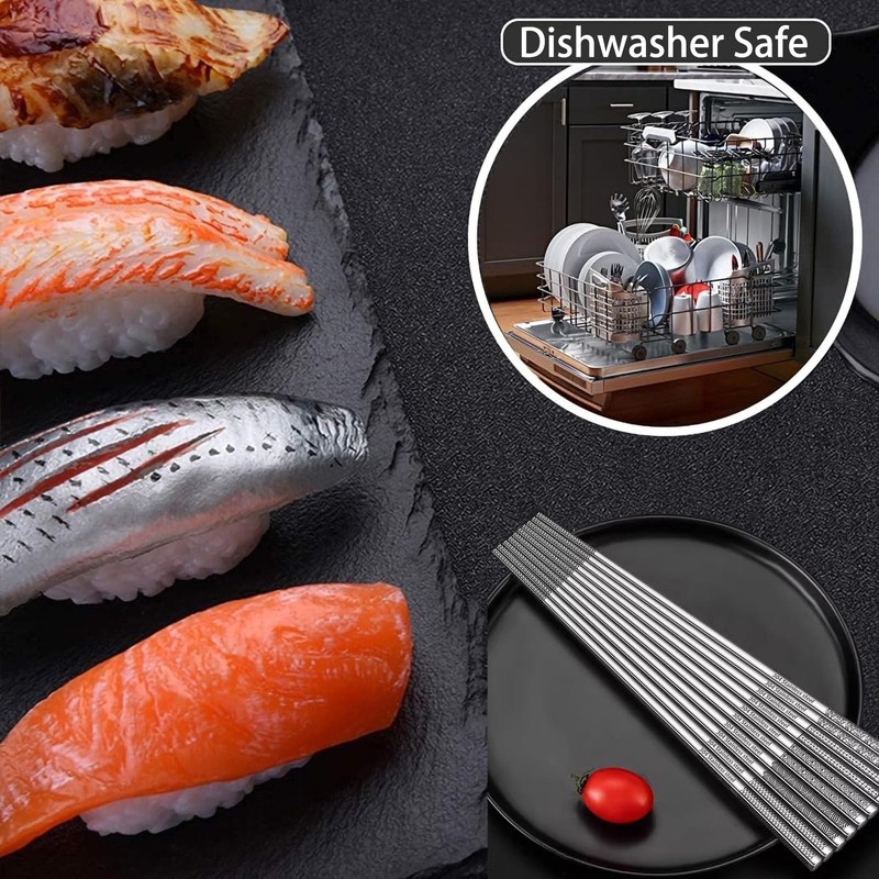 - 【Premium Materials】Our metal chopsticks are made of high quality food grade 304 stainless steel, won't get rusty like the low quality steel chopsticks, not easily bend or crack, more durable , Easy to clean and dry, dishwasher safe, The best choice for safe and durable reusable chopsticks.