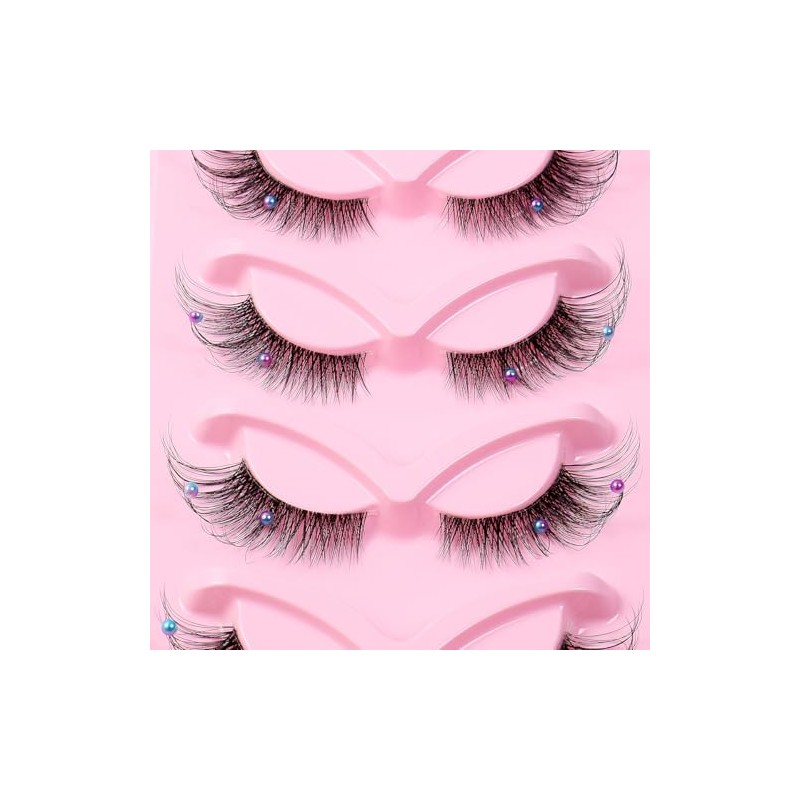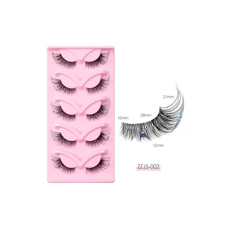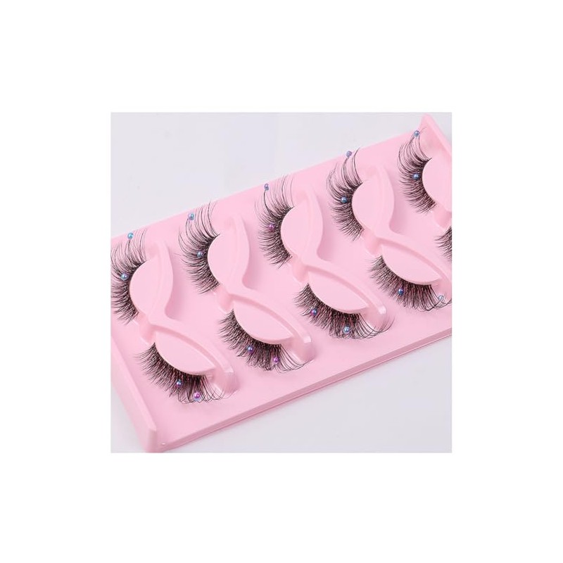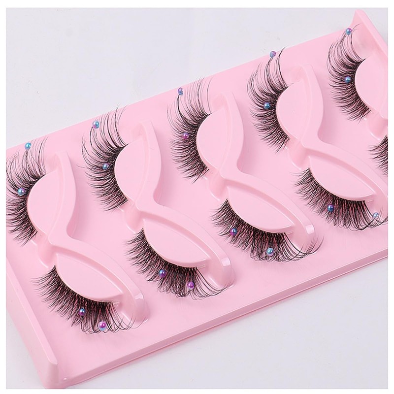 5 Pairs Wispy Lashes Pearl False Eyelashes Fluffy Natural Look False Eyelashes Thick Soft Curly Lash Extensions - Easy Application-Colorful