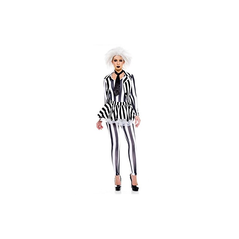 5 PC. Ladies Grave Beetle Ghost Coat Costume Set - Small/Medium - Black/White