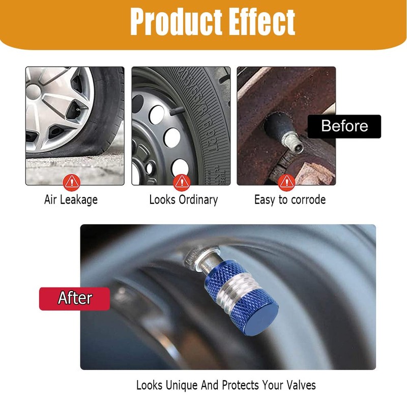 - [High quality tire caps]: These valve caps are made of aluminum alloy, durable and firm, can withstand extreme weather, rust proof, and are not easy to deform or break. Automotive Wheel Tire Valve Stem Covers are rust and corrosion resistant.