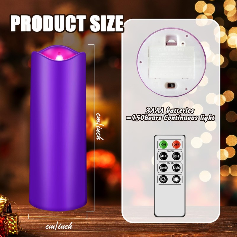 • Nice Combination: there are 5 pieces of flameless pillar candles, including 3 pieces in purple, 1 piece in pink and 1 piece in white, and each color represents a significant element for the coming Christmas holiday season