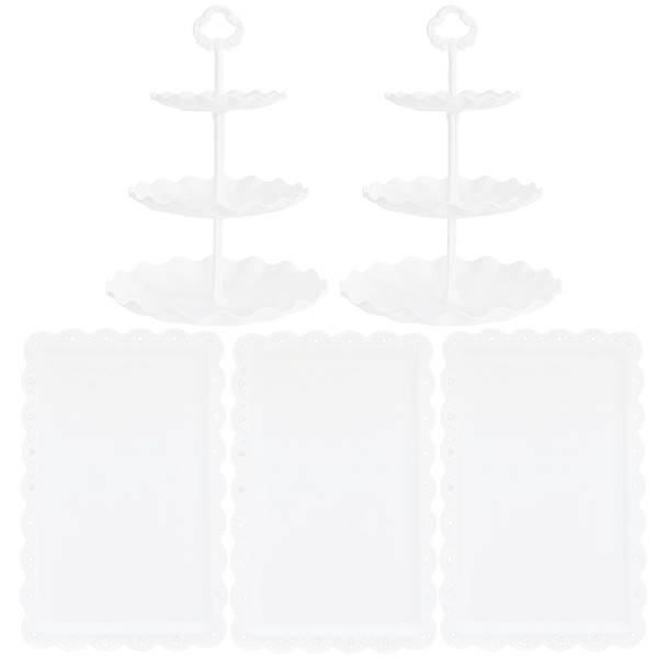 - This plastic dessert stand set and serving platters are made of PP plastic. It is reusable and safe. The design of the rectangle food trays is a novel lace, which will not scratch your hands when using it, which is safer and more beautiful