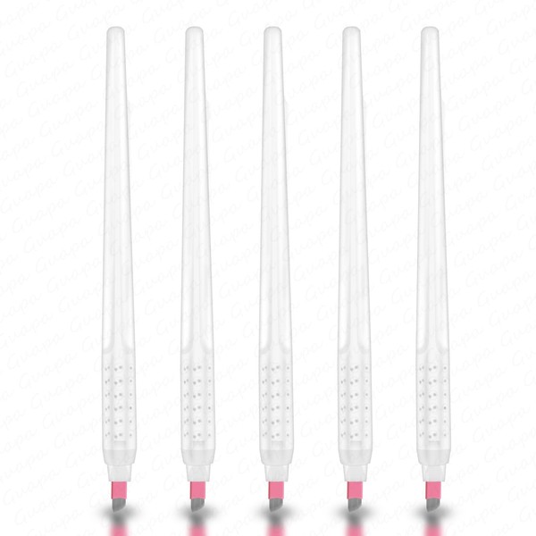5 Pcs Disposable Microblading Pen Set – Precision Eyebrow Tattoo Tools with Multiple Blade Sizes – Ideal for Permanent Makeup Artists,& Eyebrow Shaping (White pen - Pink Flex-14F-5pcs)