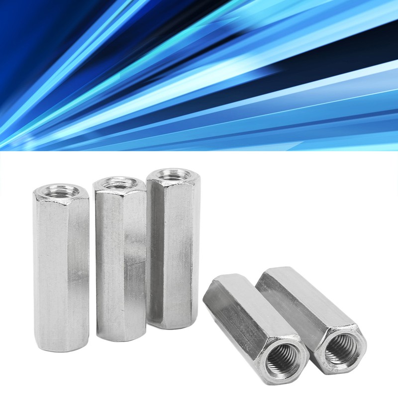 1、Main Function: The coupling nut is used to connect two threaded rods from the opposite end together, and can be used for hanging various items vertically or horizontally. 2、5 Pcs Set: The pack contains 5 pcs rod connection nuts for your use, with precise M12 thread, 60mm length, has a wide range of applications. 3、304 Stainless Steel Made: The hex rod coupling nuts are made from 304 stainless steel material, which are resistant to rust and corrosion, ensures years of use. 4、Good Angle Granularity: The threaded rod connector adopts female thread and hex shank design, offering good angle granularity. 5、Wide Purpose: These coupling nuts are suitable for bolts, studs, machine screws, threaded rods, etc., great for indoor and outdoor use.