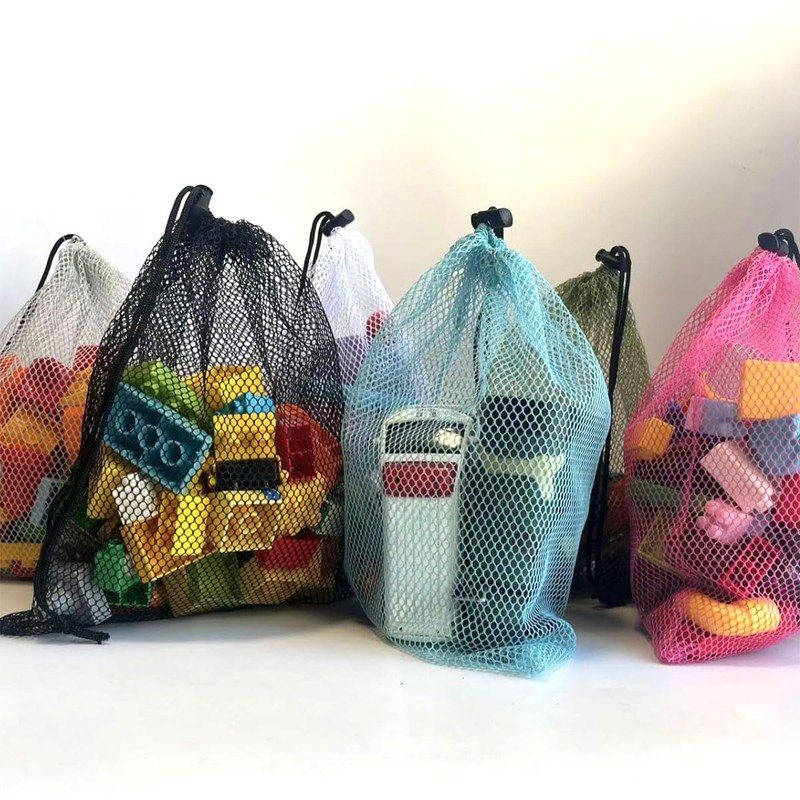 5 Pcs Mesh Drawstring Bags Colour Nylon Mesh Storage Bags for Sport Beach Travel Gym Laundry
