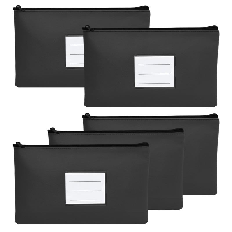 5 Pcs Money Bag for Banking Cash, Money Saving Wallet A5, Waterproof Leather Money Envelopes with Window Card and Zipper, Document Wallets A5, A5 File Folder, Coin Bags for Banknote, Black