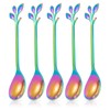 5 Pcs Rainbow Leaf Coffee Spoons, 4.7 inch Stainless Steel Ice-Cream Tea Sugar Spoons, Espresso Stirring Spoons for Mixing, Cold Drink, Dessert, Parties Tableware
