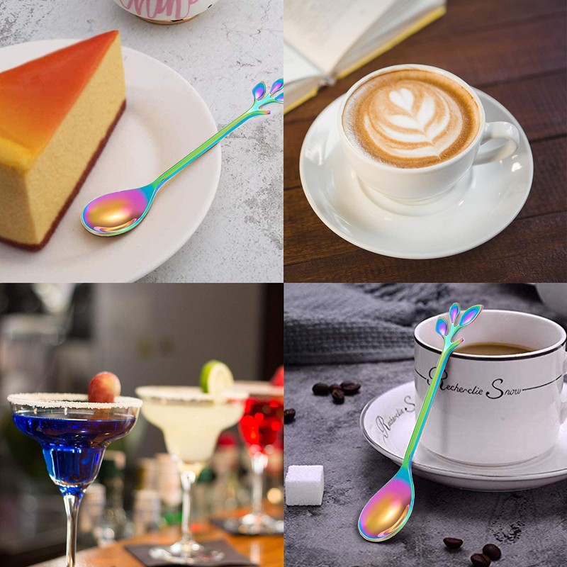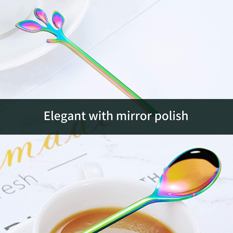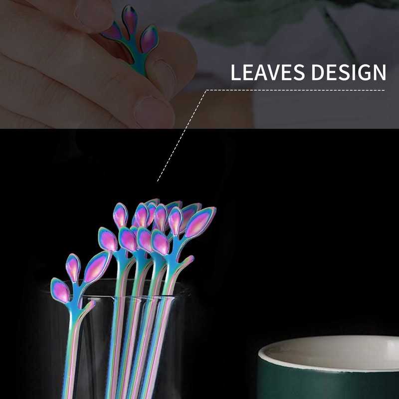 - 【Stylish Design】Rainbow ice tea spoons with gorgeous shiny color that won’t fade and unique leaf design, these mini spoons will add a charming look to your parties and impress your guests!!