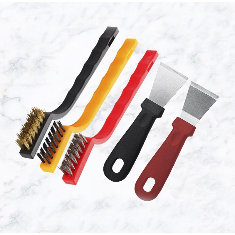 - Comprehensive 5-Piece Stove Brush Set: This all-in-one cleaning solution includes a wire brush, rust remover for metal, nylon brush, straight scraper, and bent scraper. Each tool is designed to tackle a variety of cleaning tasks around the home, from stoves to grills, making it an essential set for any household.