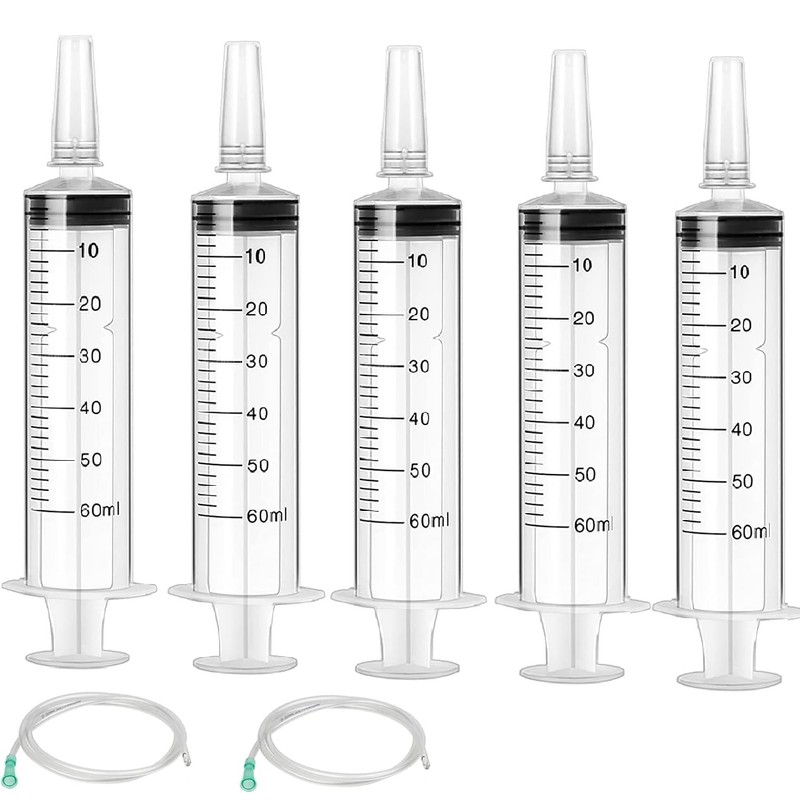 - 【Set Includes】5pcs 60ml Syringes and 2pcs 1000mm Catheters. The reusable syringe is made of high-quality plastic, stable, silicone-free, latex-free, and individually sterile. The 60ml capacity can also meet your daily use needs!