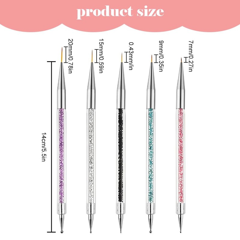 - Package Includes:This set features 5 nail brush pens in varying sizes, perfect for meeting all your nail art design needs and creating intricate patterns on nail tips.