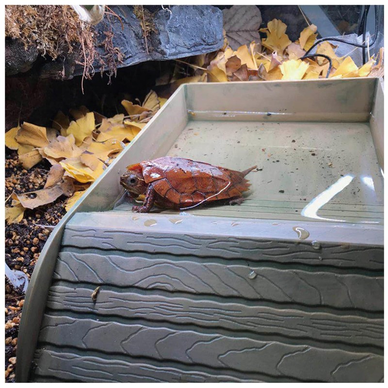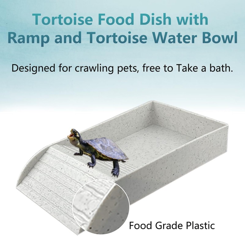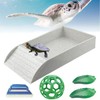 5 Pcs Tortoise Water Dish Set,Gray Tortoise Water Dish with Ramp and Turtle Water Bowl,Turtle Feeder Ball,Scrub Brush,Amphibian Reptile Water Bowl Turtles Pool Can Be Used for Turtles,Lizards
