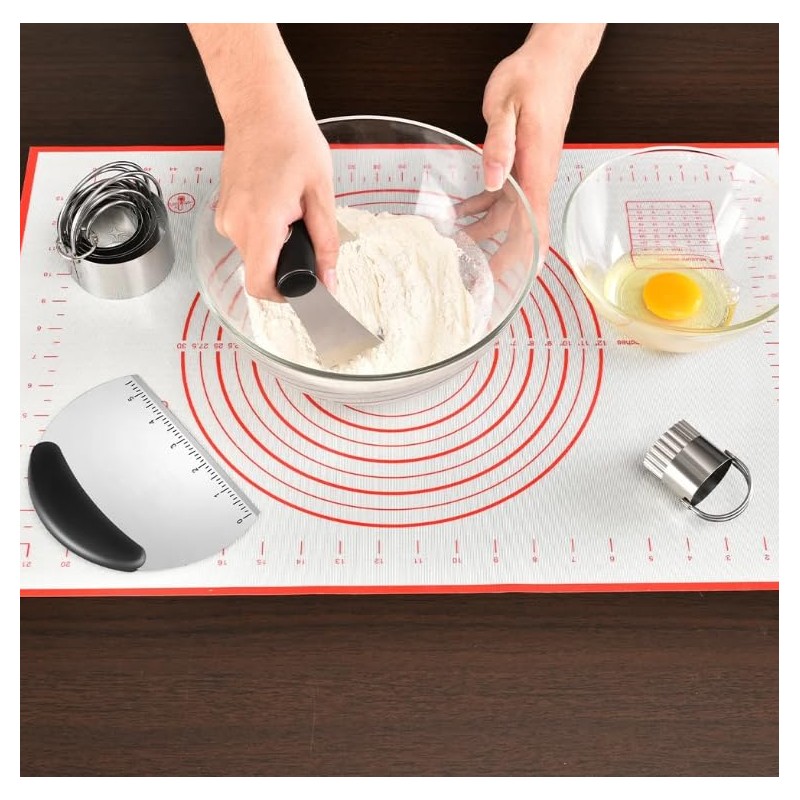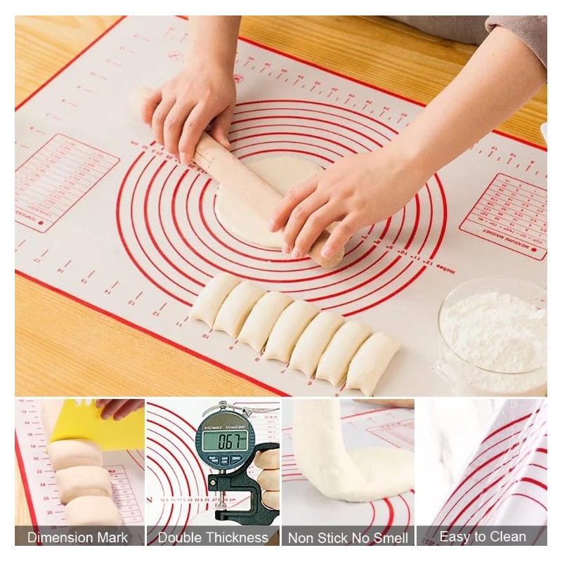 - SILICONE MAT FEATURES: Extra-thick 0.6mm pastry mat with printed measurement conversions, inch markings, and non-stick surface for precise, mess-free baking