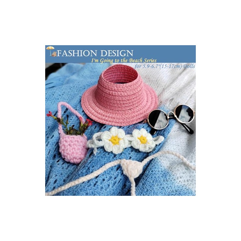 • Pink Straw Hat: The whole straw hat is knitted by hand. The pink color is very eye-catching, and the hat design is lovely, adding a sweet style to the doll and showing the summer style.