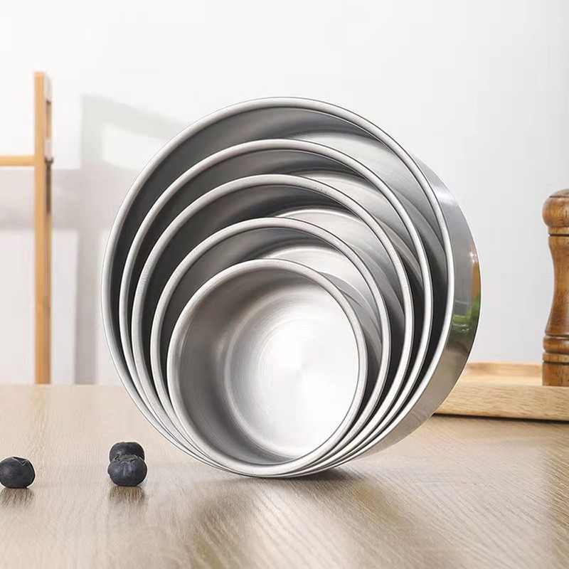 - Food storage container; diameter x height: 3.9x1.8 inches, 4.7x1.96 inches, 5.5x2.2 inches, 6.3x2.5 inches, 7.1x2.75 inches. 5 different sizes form a set.