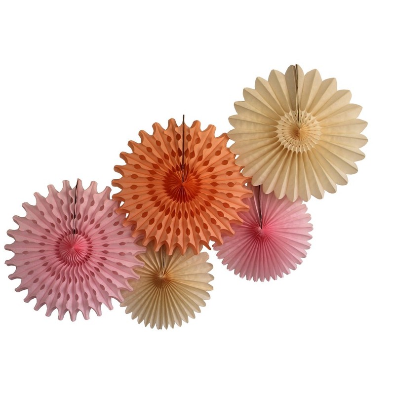 5-Piece Tissue Paper Fans, Pink Peach Blush