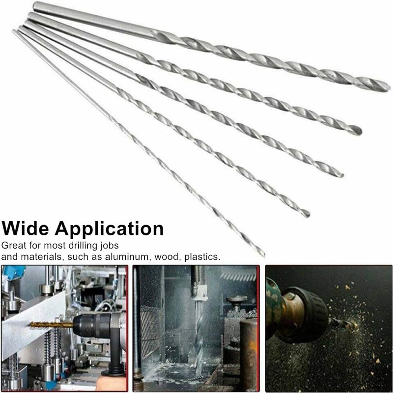 5 Piece Twist Drill Bit Set, 15 cm Extra Long HSS Direct Shank Drill Bit, 2 mm, 3 mm, 3.5 mm, 4 mm, 5 mm Diameter, Wood Drill Bit Set for Many Electric Drills and Drills