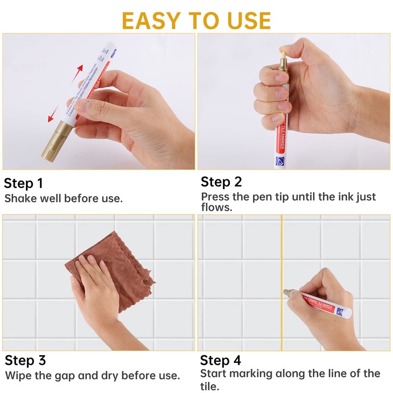 - Easy to use: shake the waterproof repair pen several times before use and then press the tip of the pen until the ink leaks. Revive dirty joints yourself, the restorer joint pen lines are quick drying, simply follow the joint lines to paint.