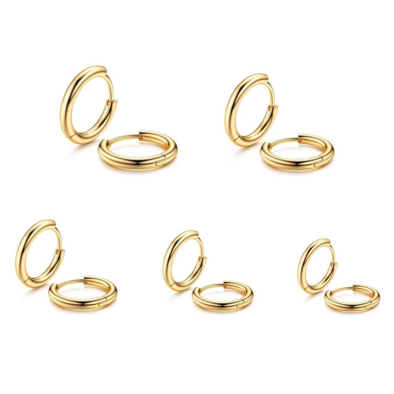 5 Pieces Hoop Earrings, Stainless Steel Earrings for Men and Women, Hoop Earrings Set Women Men, Small Hoop Earrings Set, Dainty Cartilage, Tragus, Helix, Sleeping Earrings, 8 mm - 16 mm (Gold),
