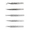 5 Pieces Stainless Steel Anti-Static Tweezers, 4 Pieces Straight Tweezers and 1 Piece Curved Tweezers with Precision Tip, Used for Jewelry Repair, Electronic Repair