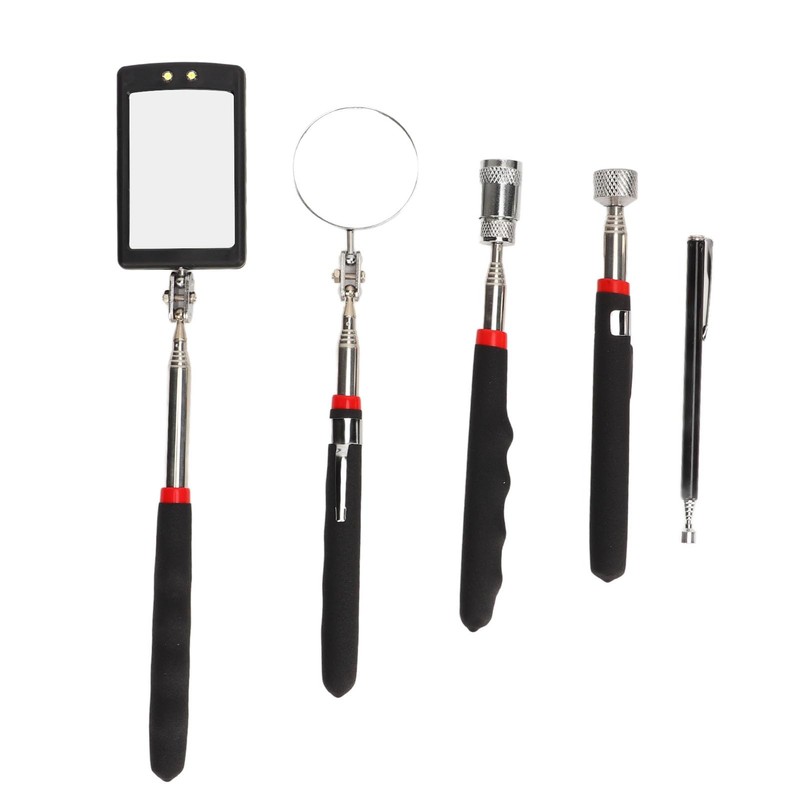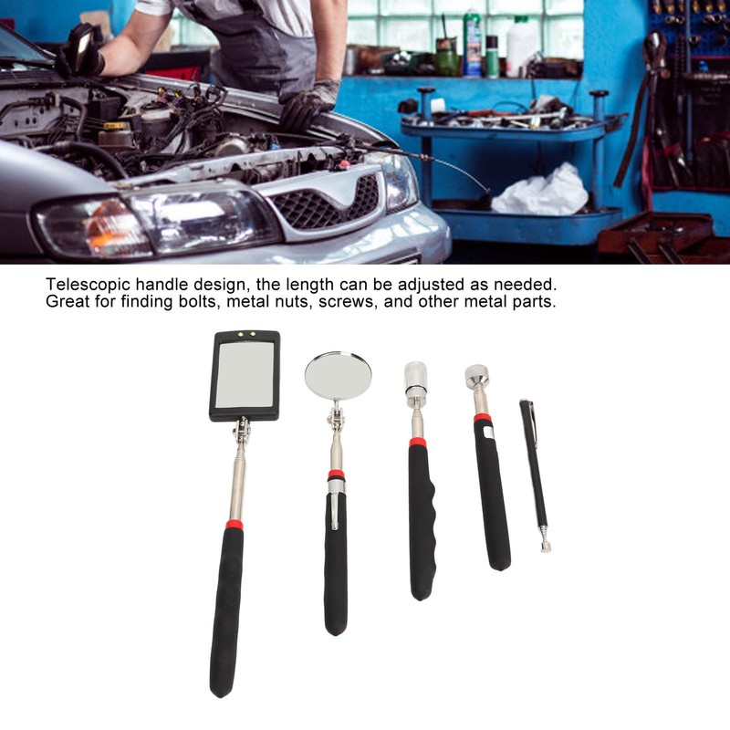 5 Piezas de Herramienta de Espejo de Inspección Telescópico, Espejo Cuadrado Redondo y Varillas de Succión Magnéticas para Inspectores de Técnicos Mecánicos (varilla de 10 Lb, 8