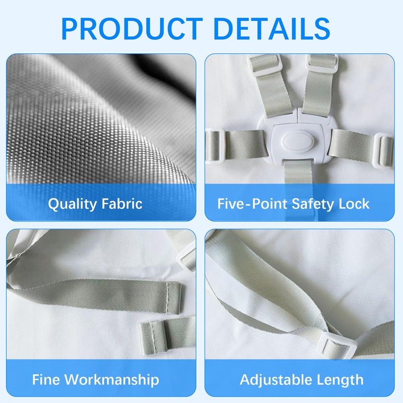 • Universal Compatibility: Designed to fit most strollers, high chairs, prams, and buggies, the adjustable size makes it easy to use across different seating setups. With a universal design, it ensures a reliable fit across various types of child safety equipment.