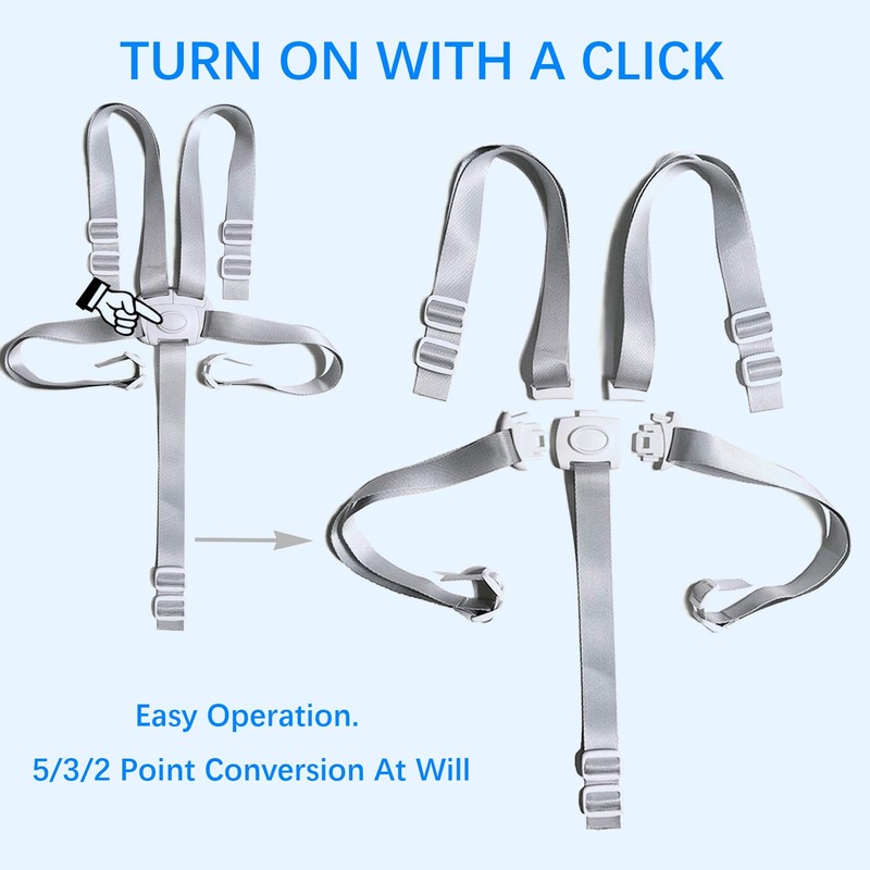 • Versatile 5-Point Design: This harness offers seamless conversion options between 5-point, 3-point, or 2-point configurations, allowing you to adapt it to various seating needs. Whether for a stroller, high chair, or buggy, it provides versatile and secure protection for your child.