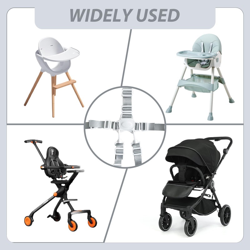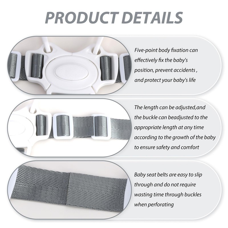 Wide versatility and compatibility: Our 5-point seat belt is compatible with most baby equipment, including high chairs, pushchairs and pushchairs. Its adaptability makes it an indispensable accessory to ensure your child's safety in different situations.