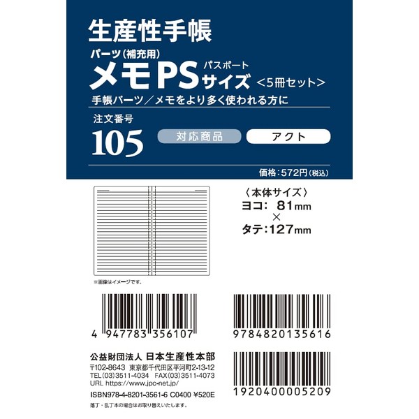 生産性手帳 メモ(5冊セット)PSサイズ No.105