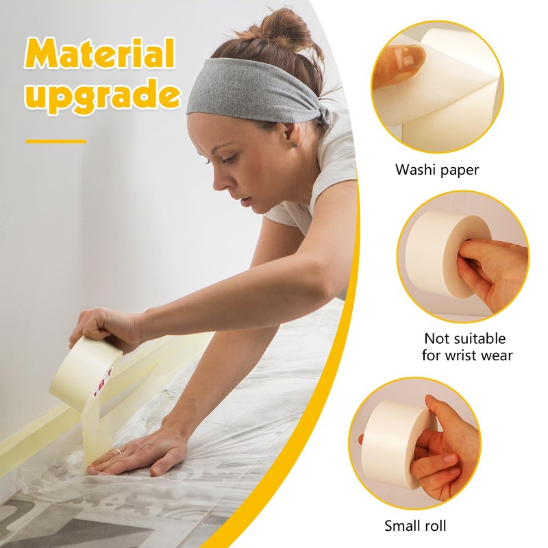 - Upgraded material: Masking tape is made of washi paper, with a smooth surface, high temperature resistance, stable adhesion, and beige white (not pure white). Whether it is used for wall painting or as a general-purpose tape, it can maintain stable adhesion