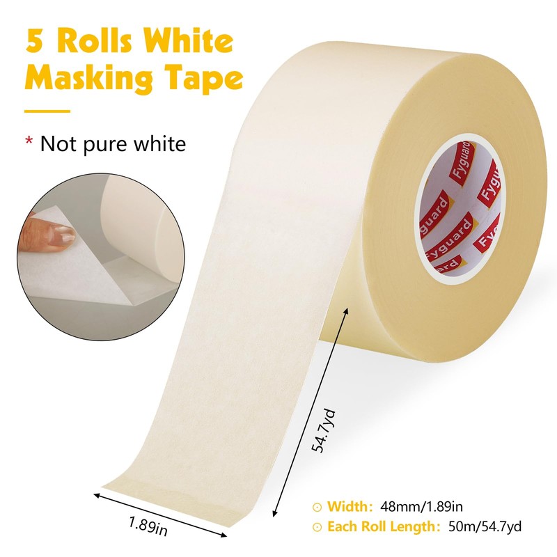 5 Rolls Masking Tape 2 Inches Wide 1.89In × 55Yd Beige White Painters Tape General Purpose Painters Tape for Wall Painting Masking Packaging, Upgraded Material