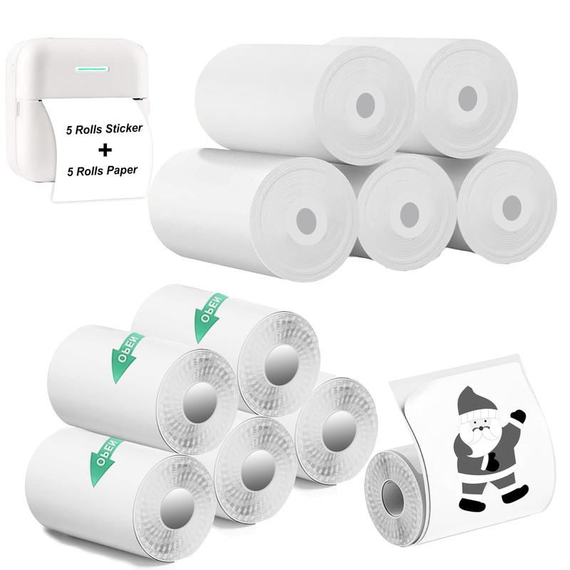 5 Rolls Thermal Printer Paper & 5 Rolls Self-adhesive Stickers, White Printer Paper For Mini Sticker Receipt Printer Portable Bluetooth Pocket Printer, Mini Printer Paper Refill For Mini Printer