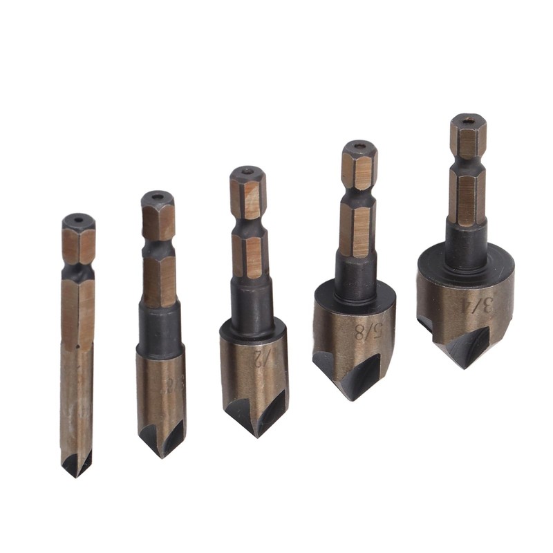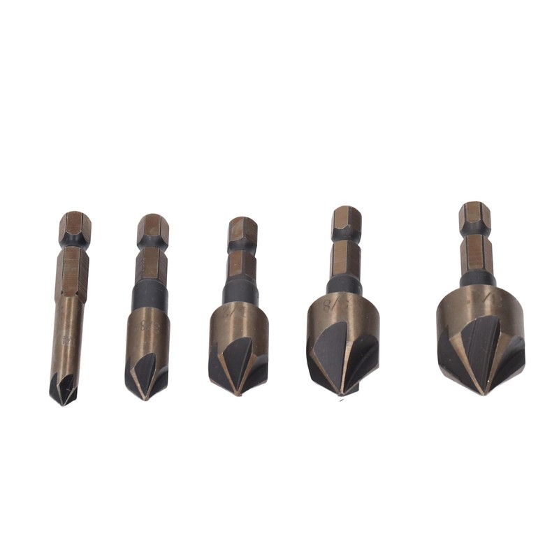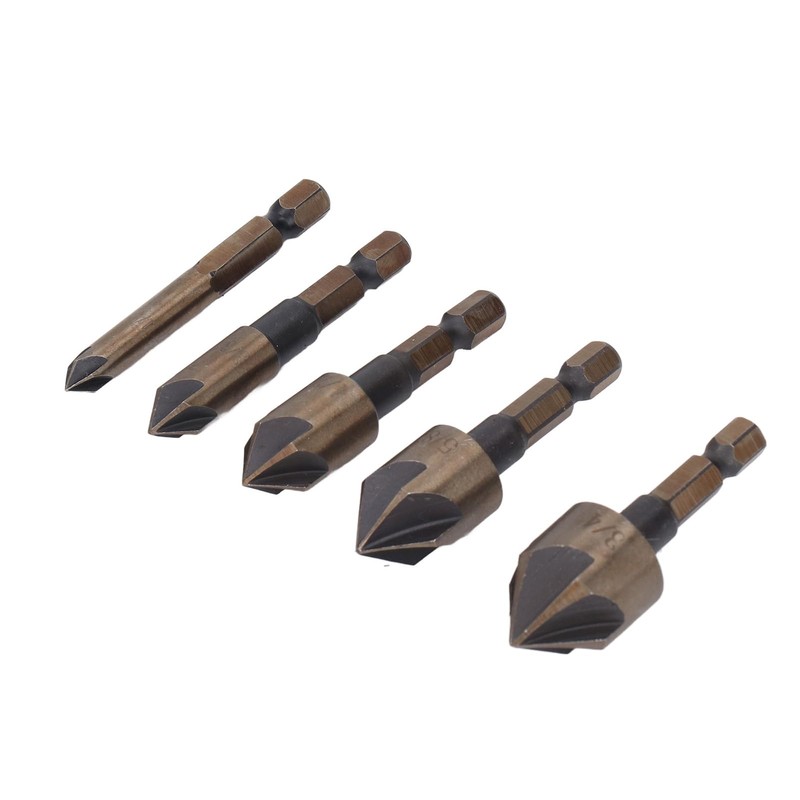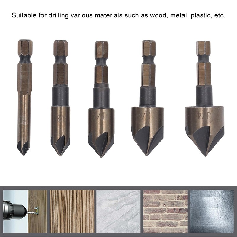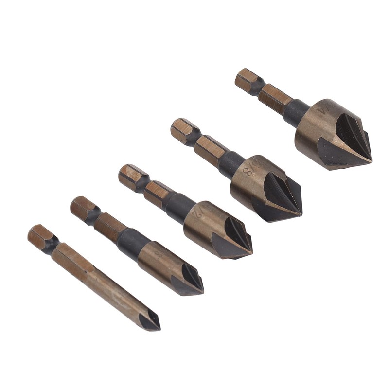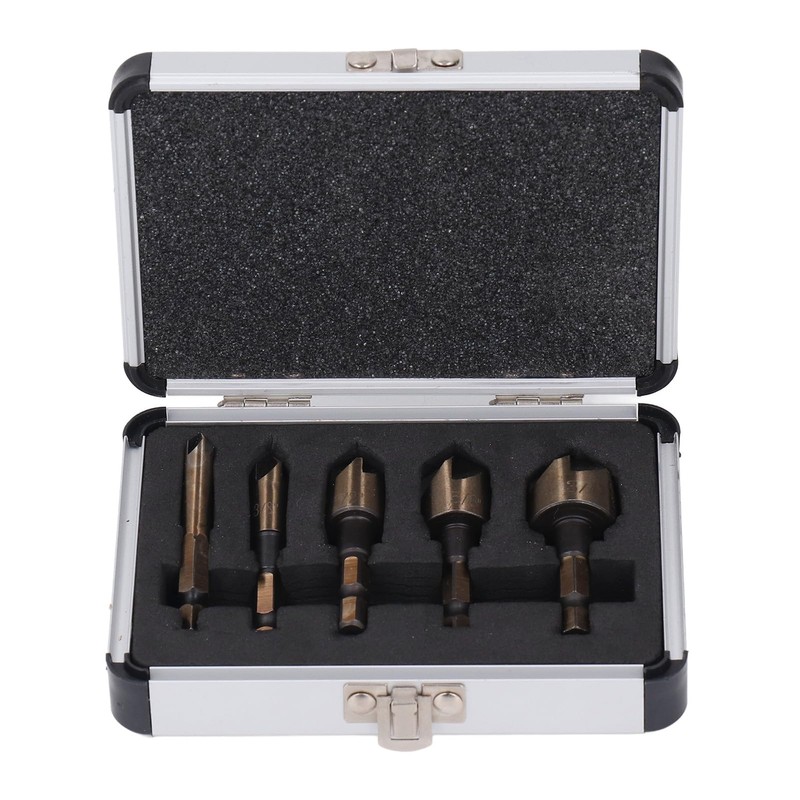 5-schneidiges Senkbohrer-Set, Stahl-Senkbohrer-Set Zum Bohren von Holz und Metall, 1/4 Zoll, 3/8 Zoll, 1/2 Zoll, 5/8 Zoll, 3/4 Zoll