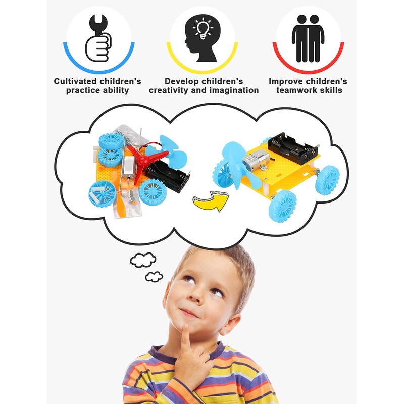 - Complete all in one kit - Contains 5 set module parts can be build different kinds cars ,mini-type generator,mini bubble machine.
