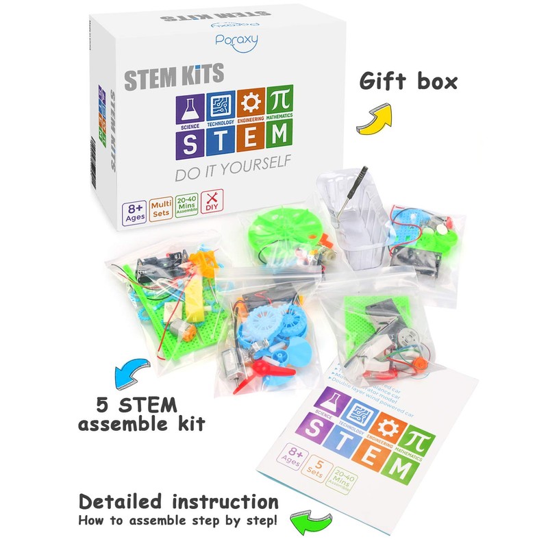 Poraxy 5 Set STEM Science Kits for Kids Ages 8-12, Robotics Model Car, Toys for Ages 8-13, Building Engineering Experiment Projects, Birthday Gifts for Boys Girls 6 7 8 9 10 11 12 13 Year Old