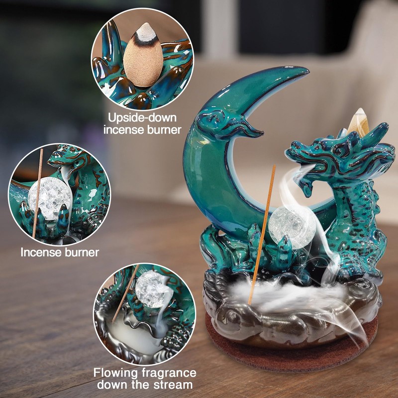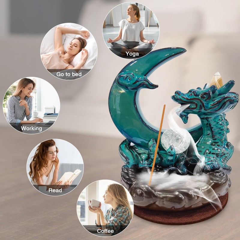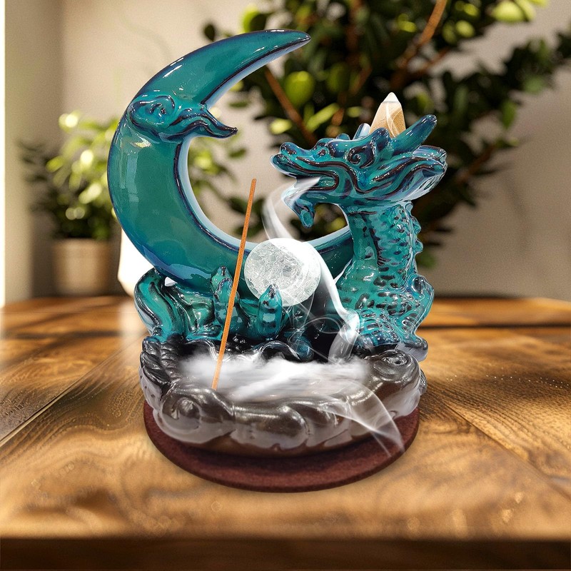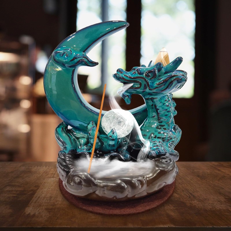 - Exquisite Design: This set features a stunning blue - toned ceramic moon incense burner with a dragon motif, creating an eye - catching centerpiece for your home. The intricate details and vibrant color make it a beautiful piece of art as well as a functional incense holder.