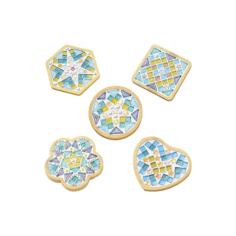 5 Sets Glass Mosaic DIY Coaster with 5 Different Shape Diamond Painting Kit, Children's Creative Handmade Materials Kindergarten Parent-Child Activity DIY Coasters kit Home Decor Coasters
