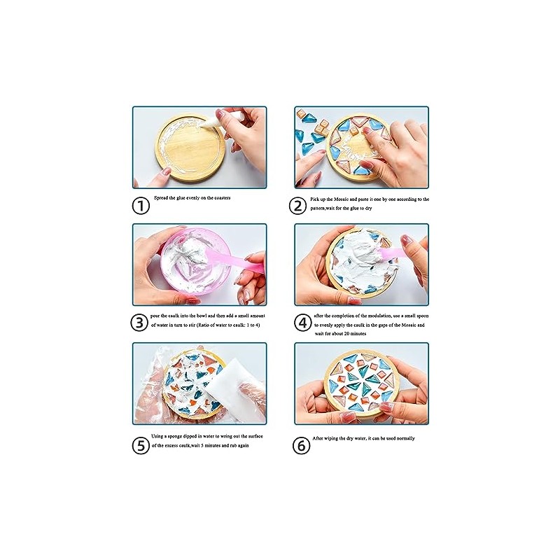 - 【Complete Mosaic DIY Kit】 Contain bamboo bottom embryo full of texture strong and odorless; bright colors high-quality mosaic; caulk fine powder texture safe and environmentally friendly as well as some easy-to-make mosaic tools and instruction manuals designed for beginners.