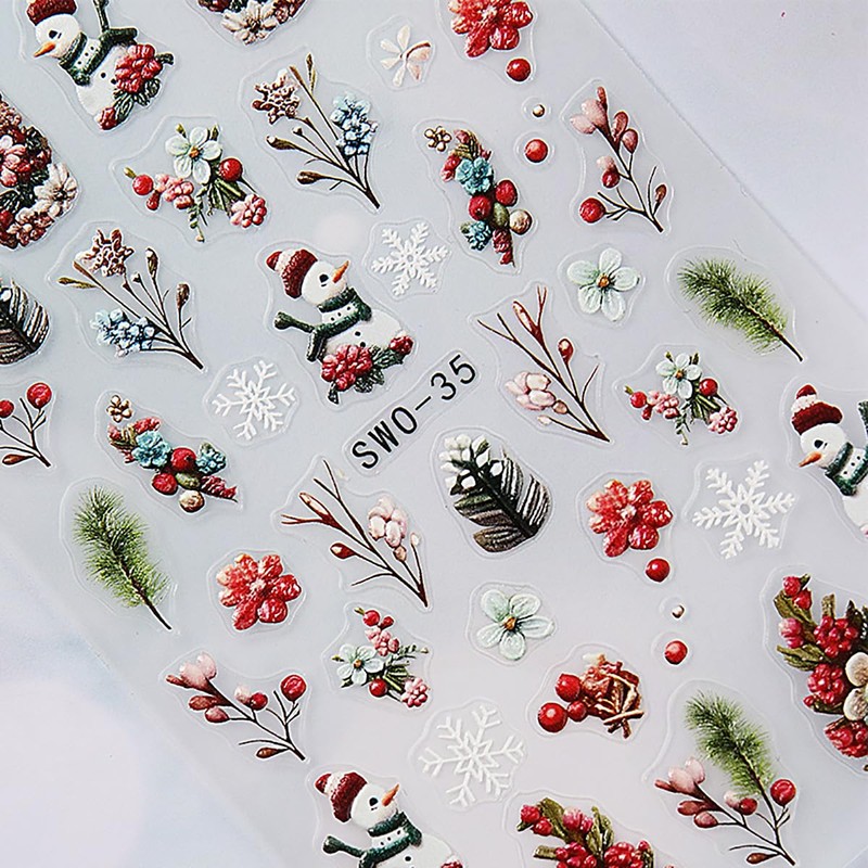 - Easy to Use: Winter nail art stickers decals are self-adhesive and requires no glue, just remove sticker then stick this 3d nail decals on your nail. Apply top coat gel to seal to make the stickers last longer.