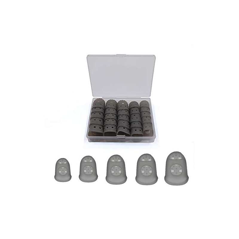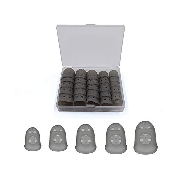 5 Sizes Guitar Fingertip Protector With Compact Box, Premium Silicone Guitar Finger Guards, Non-Slip Breathable Fingertip Protection Covers Caps for Guitar, Sewing, String Instruments (Grey)