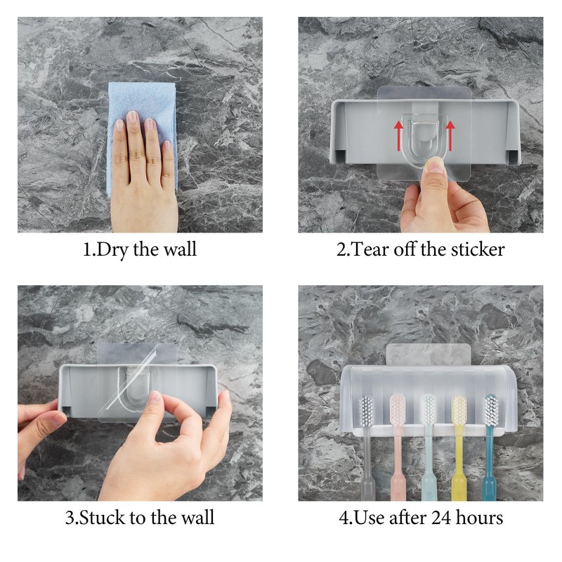 - Self adhesive toothbrush holder is easy to install, self adhesive, no drilling.