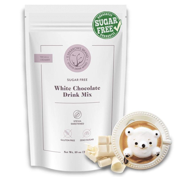 5 SPARROWS Sugar-Free White Chocolate Flavored Drink Mix, Sweetened with Stevia & Erythritol - No Sugar Coffee Creamer (White Chocolate, 10 oz)
