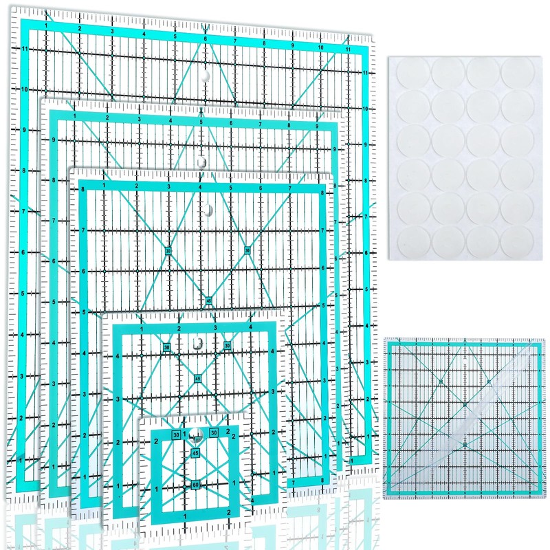 - 【Comprehensive Quilting Rulers Set】: Includes 5 square quilting templates (12.5", 10", 8", 5", 3.5") to meet all your patchwork needs. Non-slip rings ensure quilting squares stay in place for accurate cutting